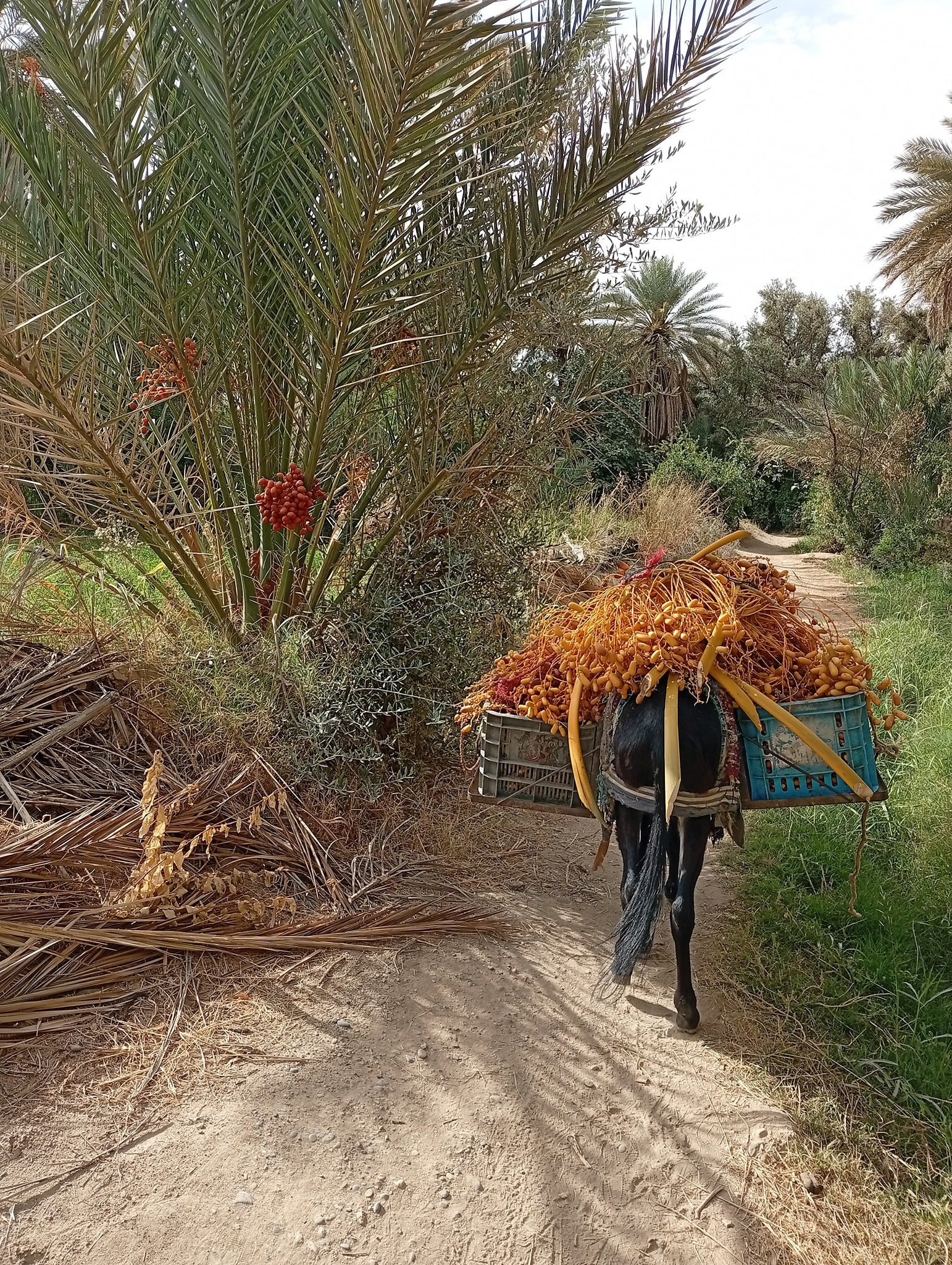 يستيقظ الفلاحون باكرًا، رجالًا ونساءً، كبارًا وصغارًا، ليبدؤوا رحلة لقطيع التمور التي تمتزج فيها رائحة التراب بنكهة التمر الطازج. مشهد الدواب وهي محمّلة بالعراجين، تسلك الممرات الضيقة بين أشجار النخيل، يعكس صورةً صادقةً عن حياة الفلاح البسيطة والمليئة بالكفاح.
